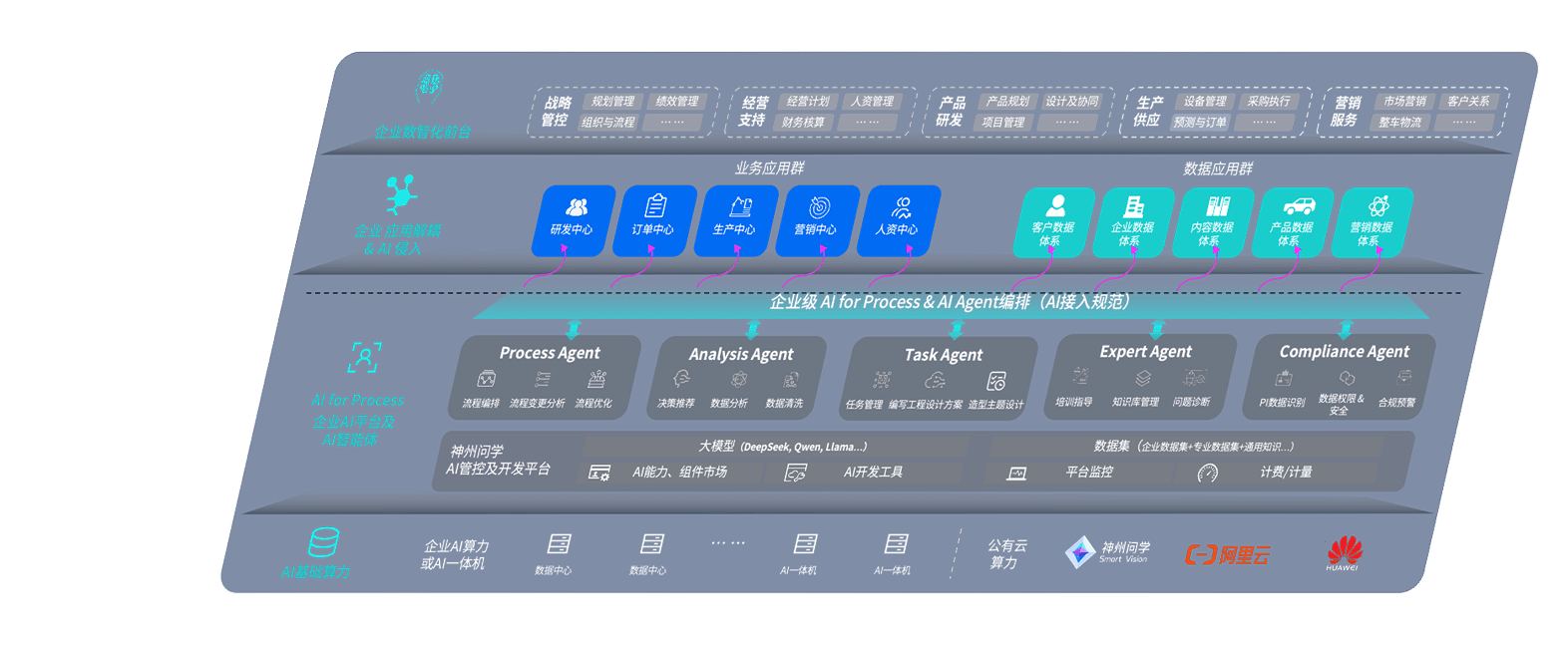 端到端的一站式AI工作空间深度融合了从企业战略规划到日常经营的全流程业务板块,,,,定向解决车企内部领域多、、、部门多、、链条长、、场景碎片化等难题,,,,支持车企快速构建以AI为核心的生产力写作体系,,实现任务执行与AI能力的无缝集成与交互