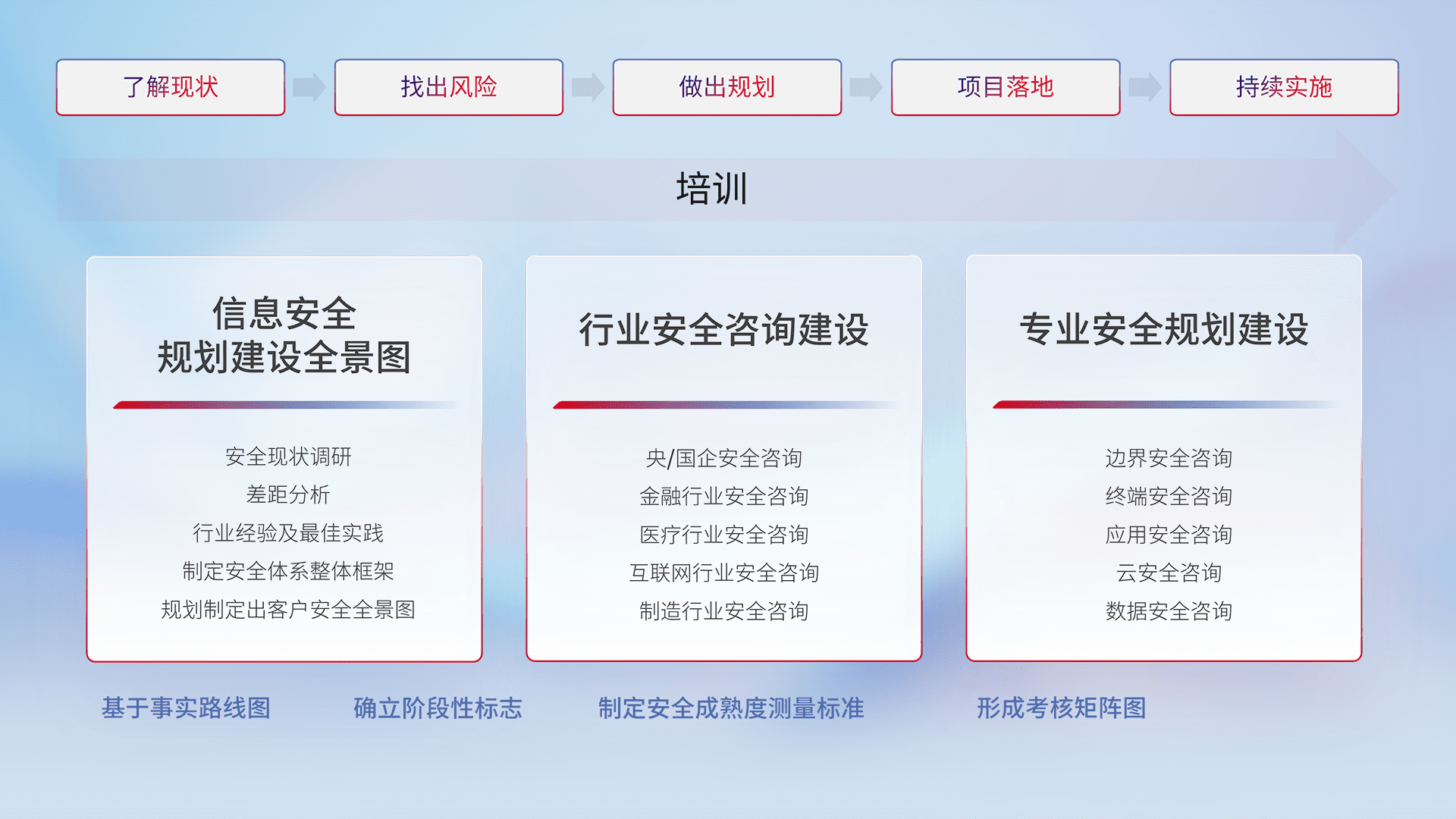 梳理客户信息安全现状调研、、、差距分析结果,,,,结合行业先进经验及最佳实践,,制订客户的信息安全管控体系总结架构,,,,最终形成一个完整的客户信息安全规划与建设的全景图。。。