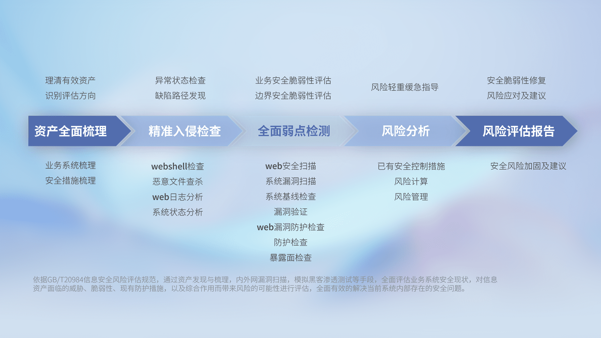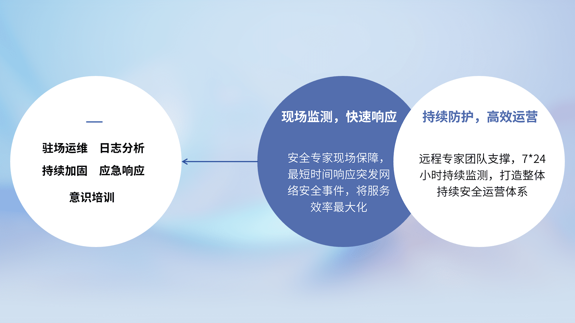 针对客户行业特性,,提供专属的一站式安全管理服务,,,,帮助客户全面感知网络空间威胁,,通过安全专家的线上、、、、线下防护支持,,,实现风险闭环,,,将安全保障常态化,,为客户打造常态化安全运维运营服务。。。。